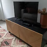 Ein Flachbildfernseher mit Satellitenkanälen gehören zur medialen Ausstattung des Zimmers.